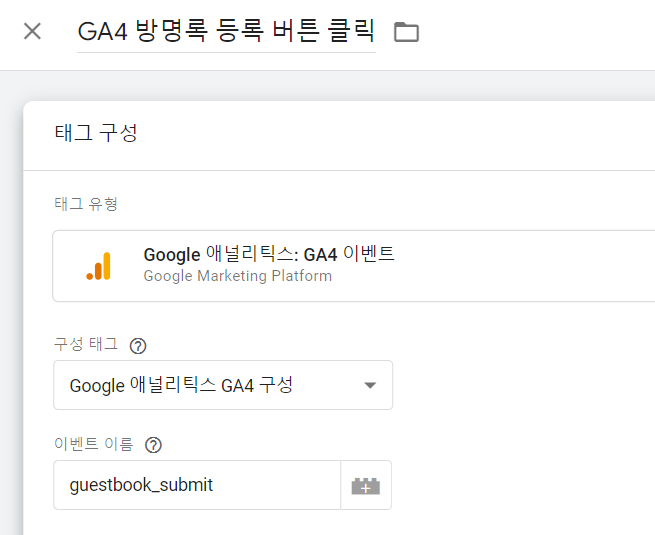 앞서 설정했던 "방명록 등록 버튼 클릭"으로 설정해줘야 한다