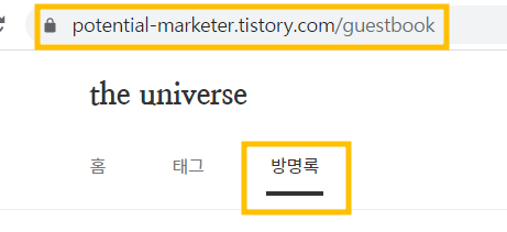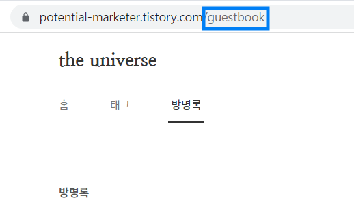 방명록 경우 URL이 따로 따지는데 아래와 같은 값을 말함
