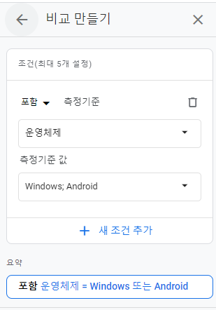측정 기준 값 : Windows와 Android로 선택