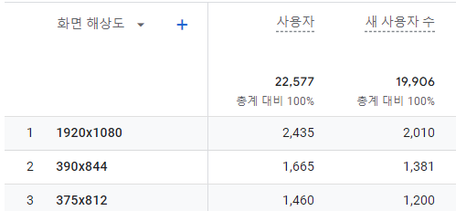 ex) 화면 해당도 별 사용자에서는 1920x1200의 해상도 사용자가 2번째로 많지만