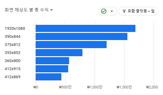 화면 해상도 별 총 수익 차트를 예시로하면