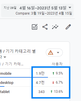 이전 기간과 비교한 데이터를 한눈에 볼 수 있음