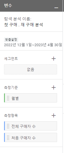 ■ 측정항목 사용자 :: [전체 구매자 수] [처음 구매자 수] 선택