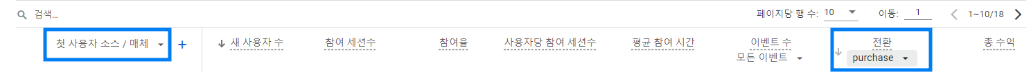 ■ 전환 모든 이벤트 대신 purchase 선택
